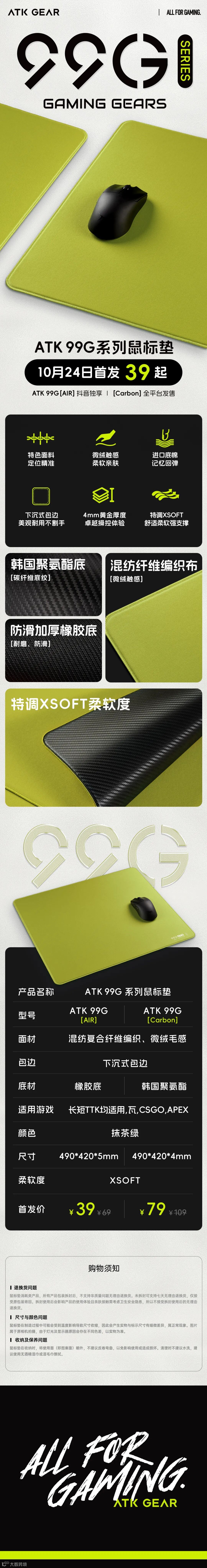 表面采用混纺纤维编织布,手感微绒。ATK 99G「Carbon