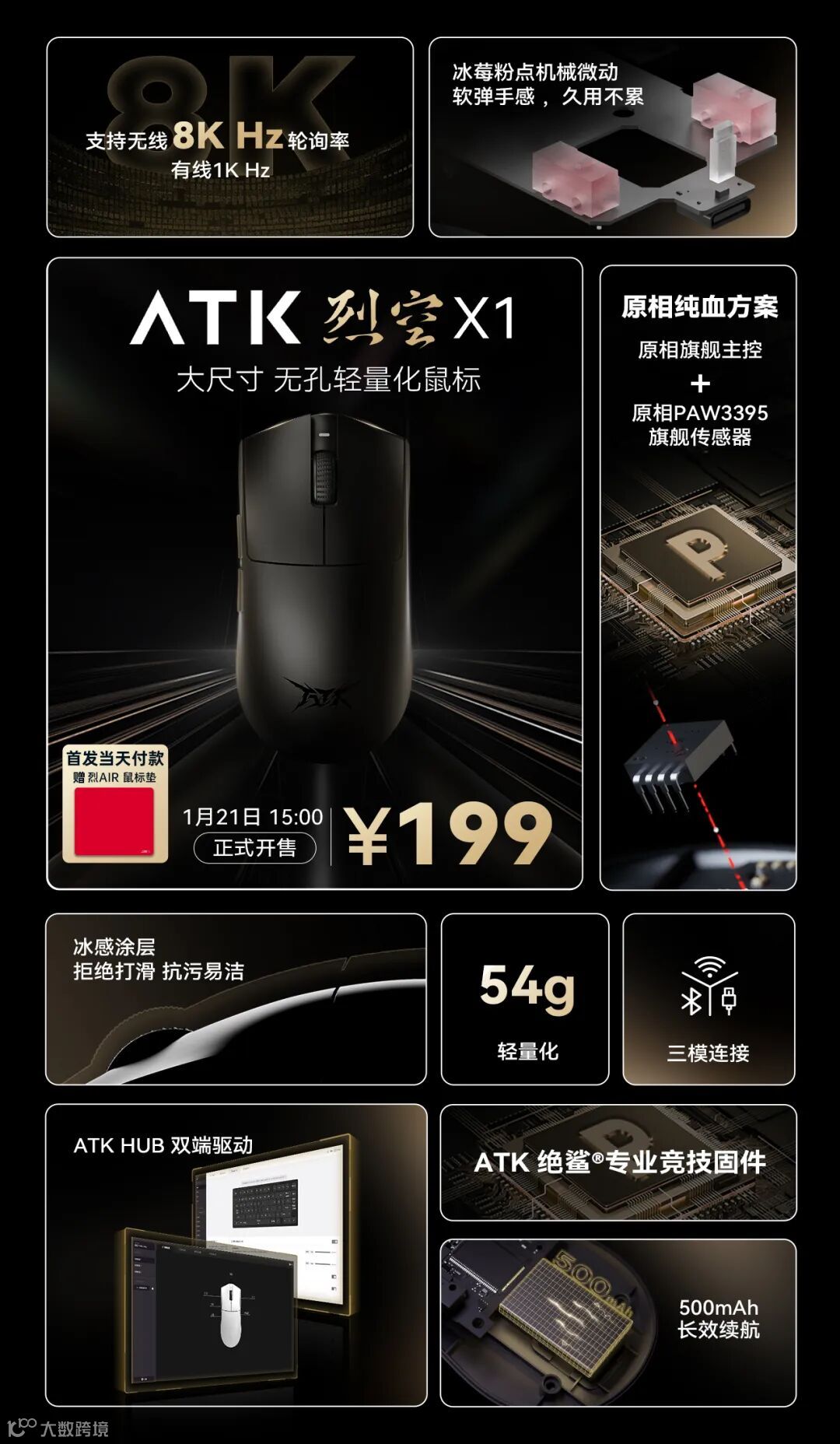 【王者来袭】ATK 烈空 X1鼠标 199起