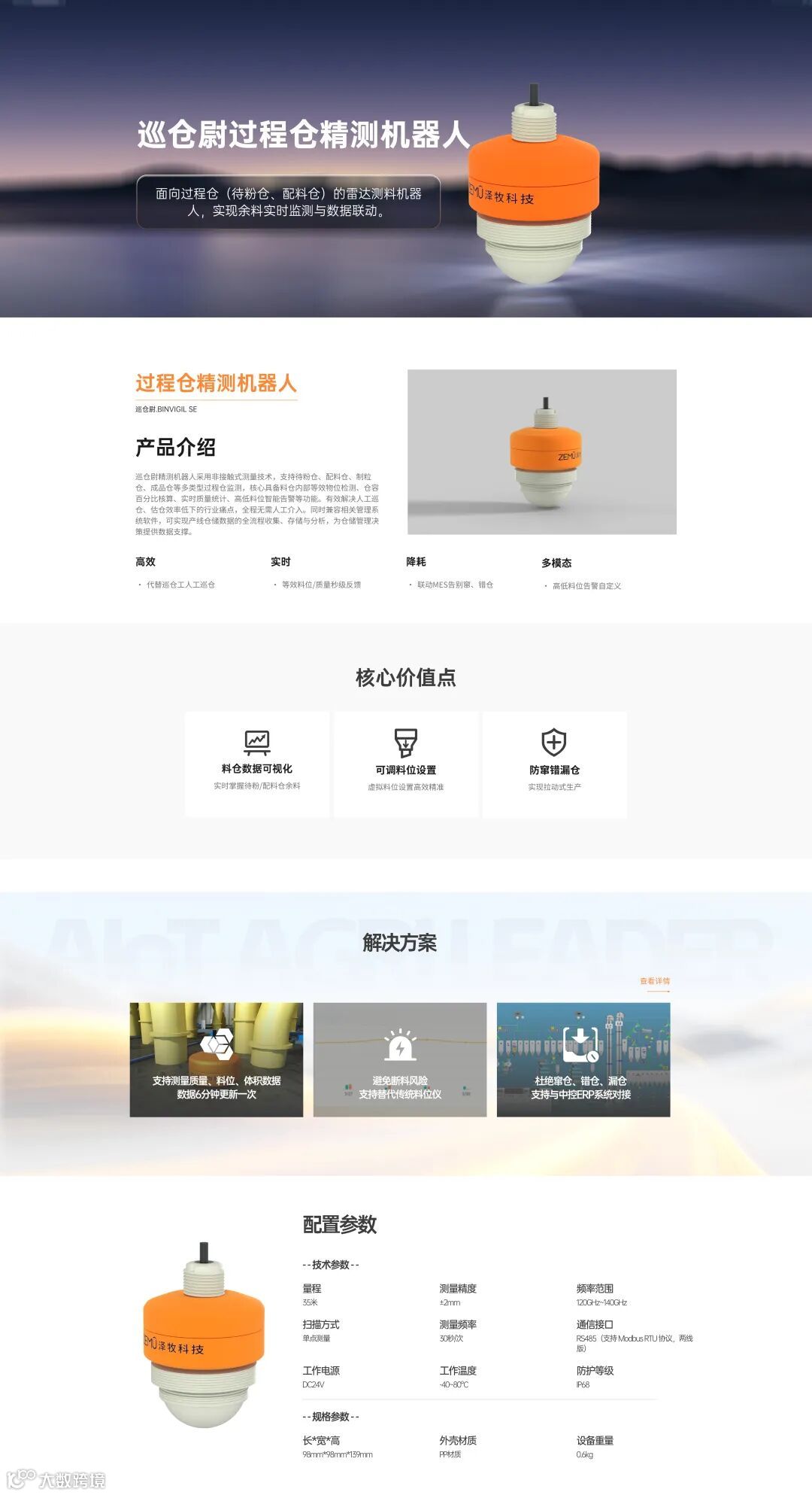 精准测量机器人产品,覆盖养殖场料塔、饲料厂筒仓,过程仓及油/液罐