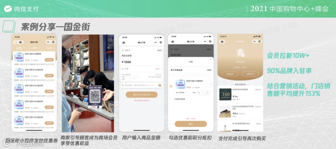 微信支付行业运营总监白振杰在大会中分享了长沙国金街案例,长沙国金街作为目前国内人流量巅峰的网红地下商业街区,有着强烈的会员数字化、营销与交易数字化的需求。