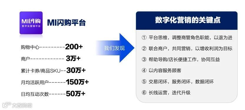 截至目前,「MI闪购」已服务200+购物中心,服务超过3万商家,整体平台月活达150万。而通过平台中大量的营销活动,总结出做好数字化营销的6大关键点: