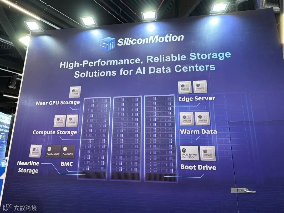 随着AI大模型的爆发式增长,数据中心对存储带宽和延迟提出了前所未有的挑战。为赋能高性能AI基础设施,慧荣科技重点展示了MonTitan®️企业级SSD主控芯片解决方案。该平台专为近GPU(Near-GPU)、近线及边缘服务器优化,能够为GPU加速计算环境提供极高的数据吞吐量与出色的能效比。