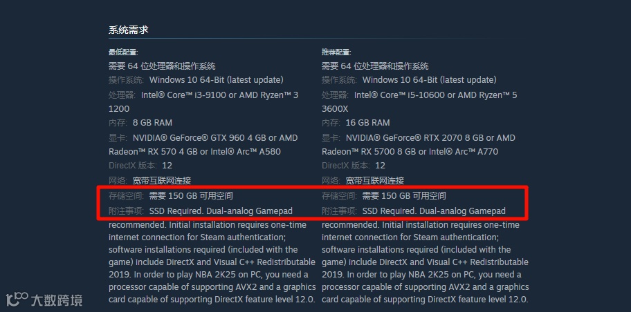 以近期发布的游戏距离,《黑神话:悟空》PC版要求130GB、PS5版要求104GB、《NBA2K25》PC版要求150GB、《战锤40K:星际战士2》要求75GB,并且这些游戏无一例外的都要求SSD存储作为基础配置。对于玩家来说,这不仅影响了下载和安装所需的时间,还对他们的硬件设备提出了更高的要求,尤其是在存储容量和性能方面。