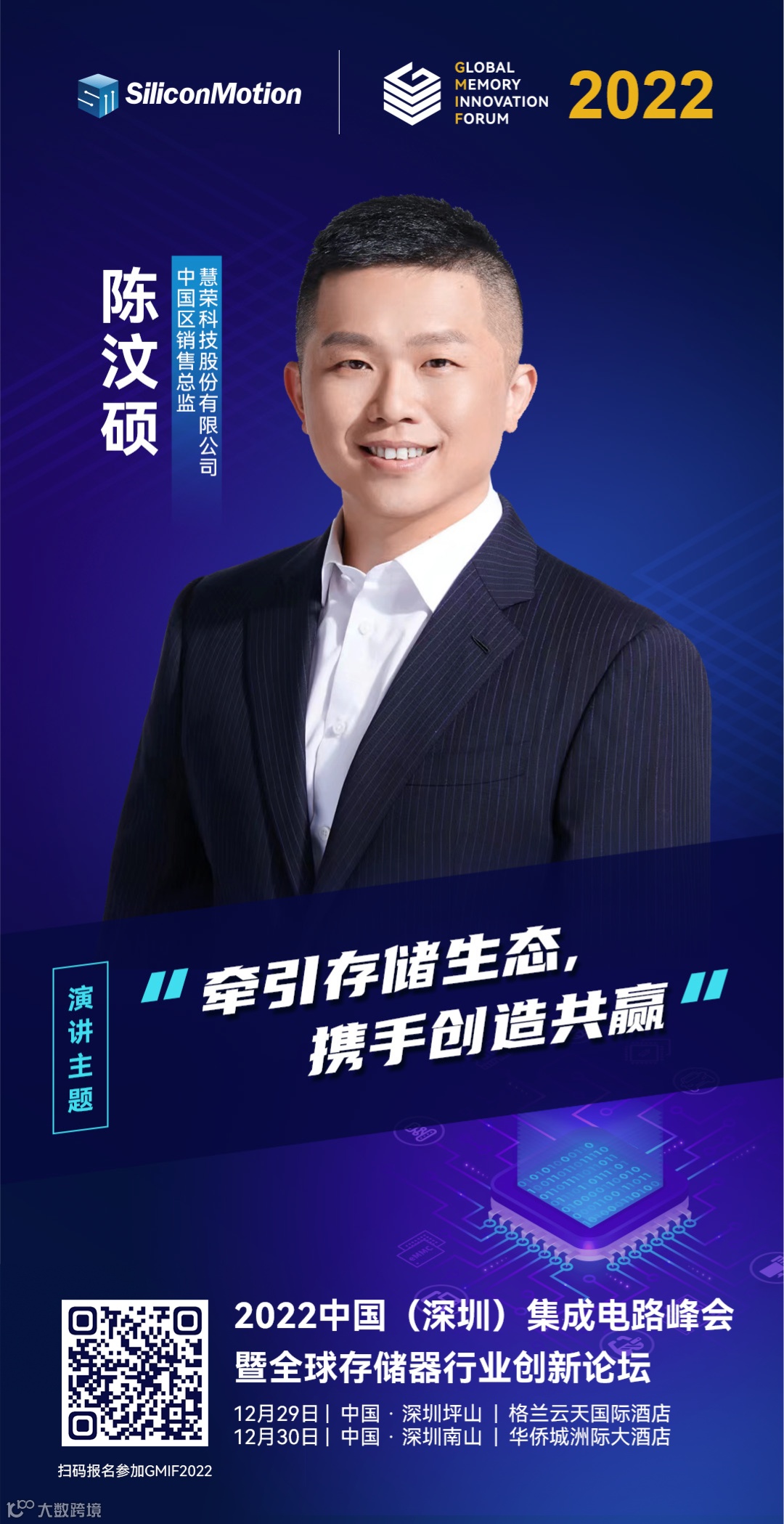 2022年12月29日,慧荣科技作为存储主控芯片的市场领导者,受邀参与“全球存储器行业创新论坛(Global Memory Innovation Forum,GMIF2022)”,将与业界精英共同探讨存储行业的新动态,分享存储技术的新发展。