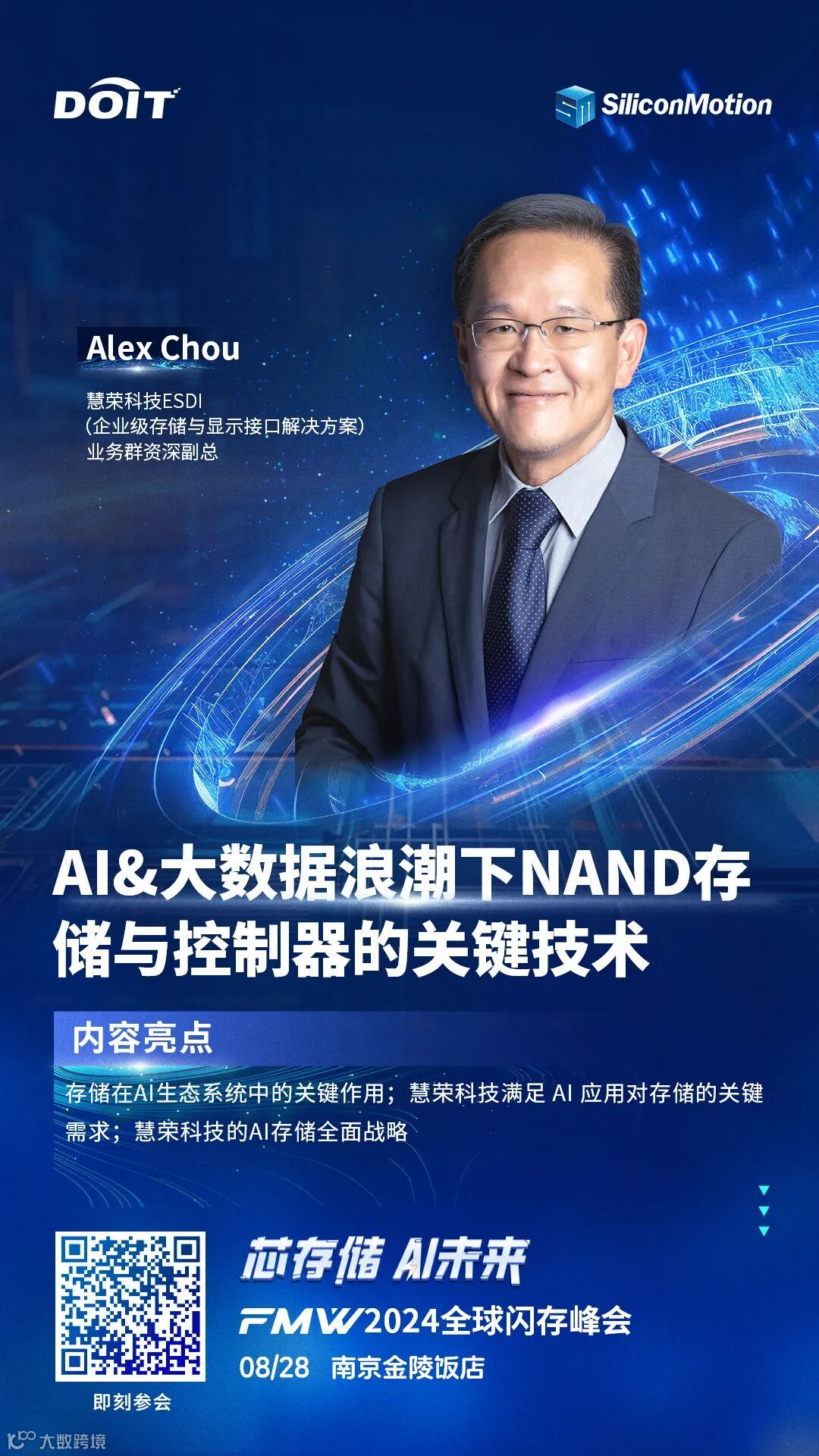 慧荣科技将在8月28日举行的2024全球闪存峰会(Flash Memory World)上,围绕“芯存储,AI未来”的主题,携旗下企业级存储解决方案在C6展台亮相。