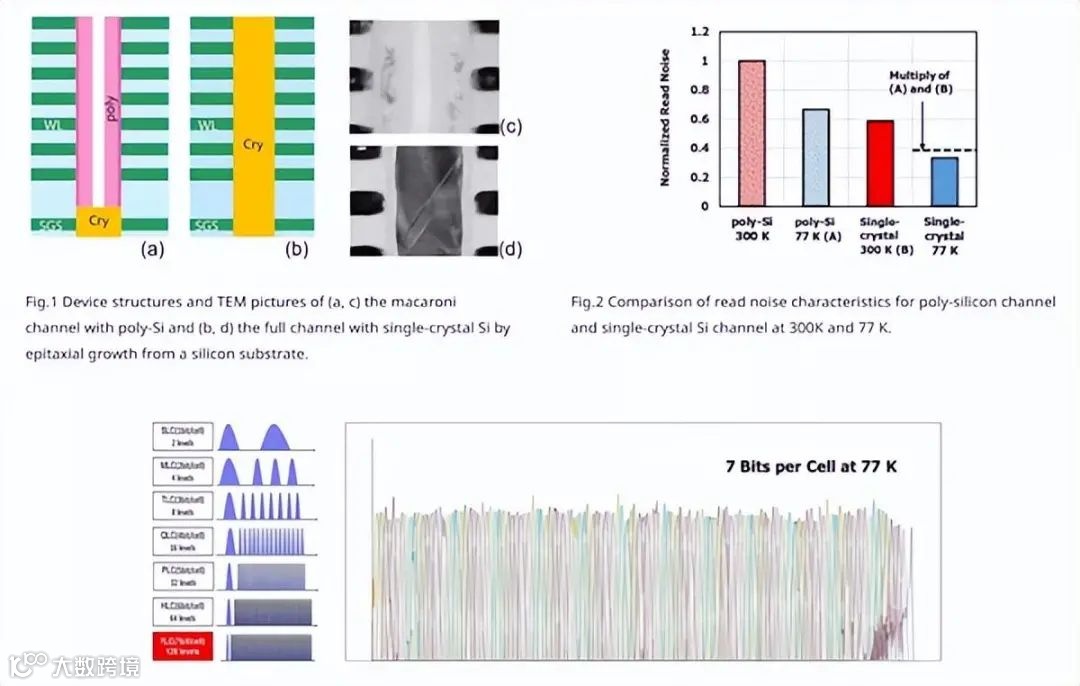 铠侠透露,之所以能够达到7bits/cell如此高密度,是因为他们使用单晶硅取代了多晶硅作为内部通道材料,从而实现单位密度的成倍增长。同时,据说HLC颗粒运行时的电流噪声也实现了更低水平。HLC的出现,意味着在堆叠技术没有改进和发展的前提下,仅靠存储单元中的比特增加就能实现更大容量的存储空间。