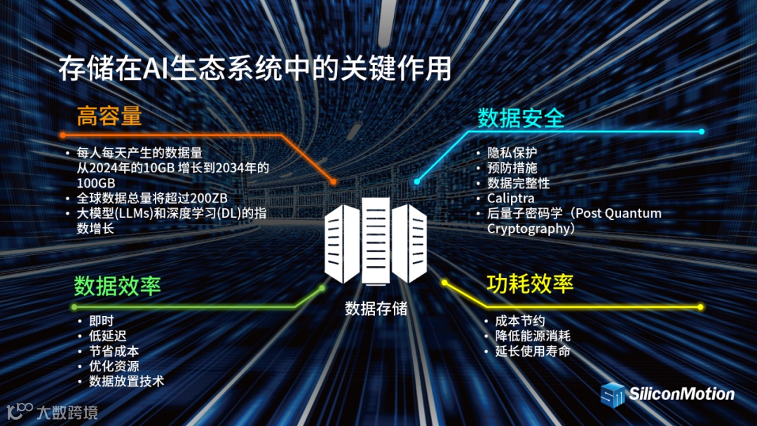 在本次大会上,慧荣科技CAS业务群资深副总段喜亭先生发表了主题演讲《AI数据效率,存储关键技术》,从存储技术的前沿创新到实际应用场景进行了全面阐释,展现了慧荣科技在行业中的领先地位以及对未来技术发展的深刻洞察。