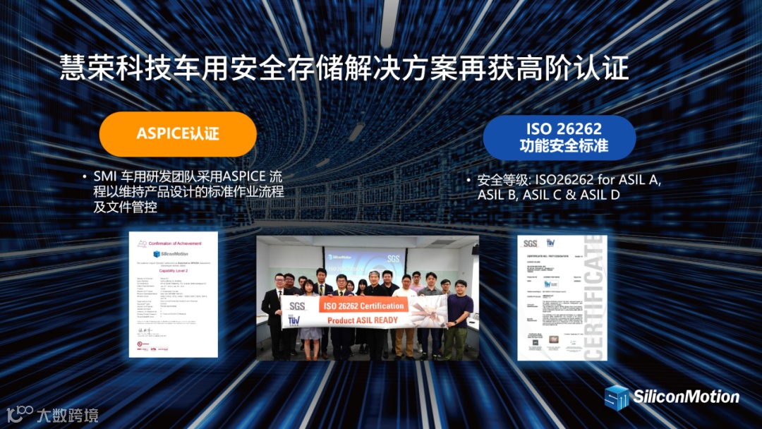 在数据中心,存储技术为海量数据的管理和高效存取提供了基础支持;在边缘设备中,存储技术通过提升轻量化AI推理设备的性能,使AI计算能力向本地化方向发展;而在智能汽车领域,存储技术则为ADAS(高级驾驶辅助系统)及自动驾驶系统提供了高安全性和高可靠性的解决方案。慧荣科技的解决方案不仅符合ISO 26262功能安全标准,还通过改进设计实现了低功耗和高效能,助力汽车行业迈向更加智能化的未来。