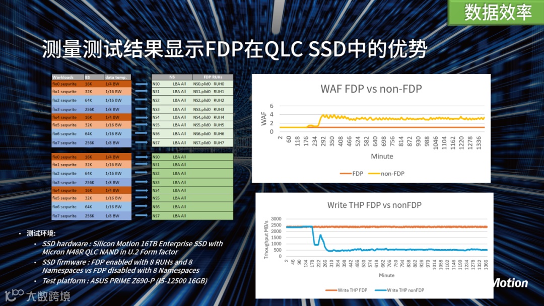 测试结果显示,FDP技术不仅改善了系统性能,还显著降低了写入放大,使其成为AI存储生态中不可或缺的一部分。