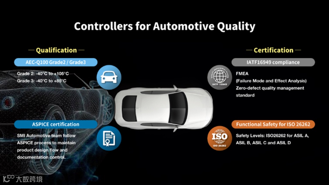 与此同时,Ferri-UFS也在安全性方面达到了一系列车规级标准和认证。包括:AEC-Q100 Grade2/Grade3、IATF16949、ASPICE、ISO 26262。便于汽车厂商采用合规稳定的元器件产品,从而有效地节省开发周期、开发成本,来打造更高等级的汽车终端产品。
