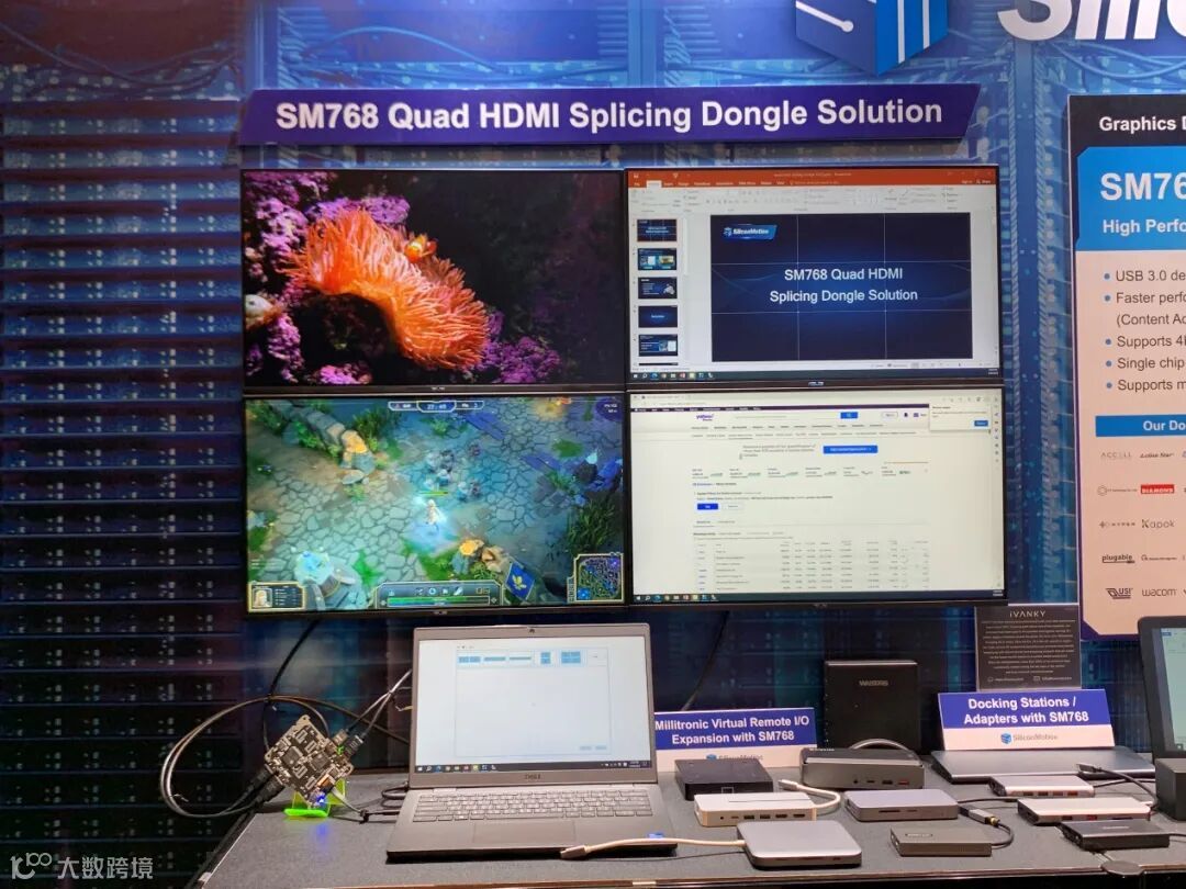 慧荣科技的SM768图形显示芯片能够为轻薄笔记本所使用的拓展坞提供高性能图形、低功耗等优势,使其轻松连接到多个4K显示器。SM768提供双显示通道并支持多个输出接口,包括 HDMI、DisplayPort、DVI、VGA、LVDS 和数字接口,支持硬件解码,通过USB 3.0接口连接即可实现最高4K30p画面显示。无论是工作还是娱乐,都能享受到超大视野和超高清晰度的画面。