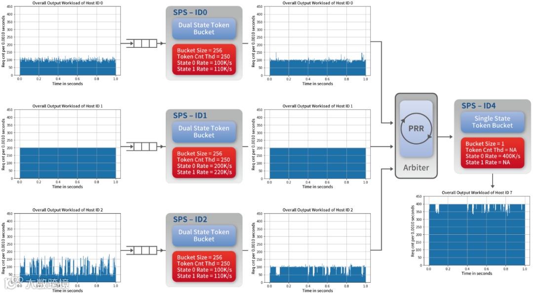 总结:首先利用第一层双状态令牌桶算法将企业级SSD中Noisy Neighbor的资源请求调整得更为平滑;其次,更为平滑的请求让Noisy Neighbor的不会影响到其他租户,甚至可以将Noisy Neighbor转变为Good Neighbor;最后通过第二层令牌桶算法,充分利用设备的带宽,避免资源浪费的同时输出更稳定的性能。