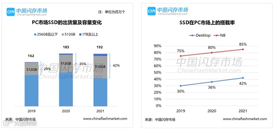 DRAM-less主控产品在市场中存在已久,并且已经成了目前存储市场的主流,2021年对于DRAM-less系列产品而言同样重要。目前中低端PC和笔记本产品凭借着出色的成本优势,将会在2021年继续实现市占率的增长,而中低端的PC和笔记本也越来越倾向于固态硬盘,因此2021年DRAM-less架构固态硬盘同样有机会依赖入门级PC和笔记本实现市场增长,进一步普及固态硬盘。