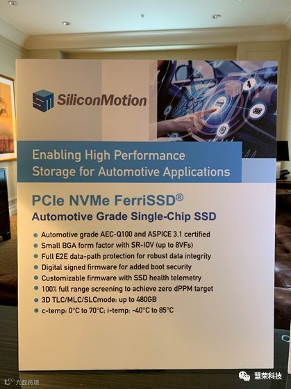 面对越来越繁荣的智能驾驶汽车市场,慧荣科技也推出了PCIe NVMe FerriSSD,将NVMeSSD整合至嵌入式BGA规格中,在极小尺寸中提供更高数据吞吐性能。同时满足AEC-Q100和ASPICE 3.1等规范,拥有完整的E2E数据路径保护,确保数据的完整性。