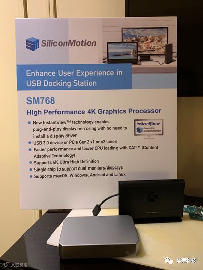 SM768是一款支持4K高清多屏幕的SM768高性能图形显示芯片,搭载慧荣科技全新专利的 InstantView 技术无需安装显示驱动程序即可实现即插即用的显示镜像。具有128位图形引擎提高图形显示速度,并提供色彩空间转换器和缩放功能。提供双显示通道,并且支持HDMI、DisplayPort、DVI、VGA和数字接口等多个输出接口,SM768拥有慧荣科技专利内容自适应技术(CAT),可通过算法压缩画面内容,在保证画面显示质量的同时加快传输速度降低延迟,并且支持Windows、MacOS、ChromeOS 或 Linux 的主机,适应不同客户和多样化使用环境需求。