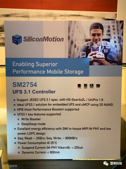 目前主流手机存储已经从64GB升级到128GB,存储也由UFS 2.0逐步升级到UFS 3.0,但对于2020年的旗舰手机而言,UFS 3.0还远远不够。慧荣科技展出SM2754主控芯片,支持JEDEC UFS 3.1协议以及双通道HS-Gear-4标准、SCSI体系结构模型(SAM) 和UniPro 1.8标准,可实现高性能存储访问、更高的能效和更简易的系统设计门槛。SM2754 集成了专有固件和控制器技术,采用了更优秀的算法,从而提高随机持续读取和写入性能。顺序读取速度可达2,000 MB/s,顺序写入速度可达450MB/s。
