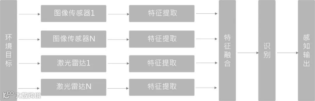 先从每种传感器提供的观测数据中提取各自然数据特征,对这些特征融合后进行识别。在基于深度学习的融合方法中,这种方式对点云和图像分支都各自采用特征提取器,对图像分支和点云分支的网络在前反馈的层次中逐语义级别融合,做到多尺度信息的语义融合。