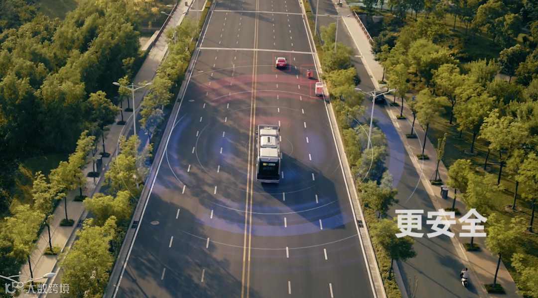这种具备AR融合感知系统的自动驾驶客车,将现实世界与虚拟世界的结合,投影至客车的实际行驶场景之中,更加直观地展现了车辆传感器在道路上究竟“看”到了什么,也让乘客的乘坐体验更具安全感。