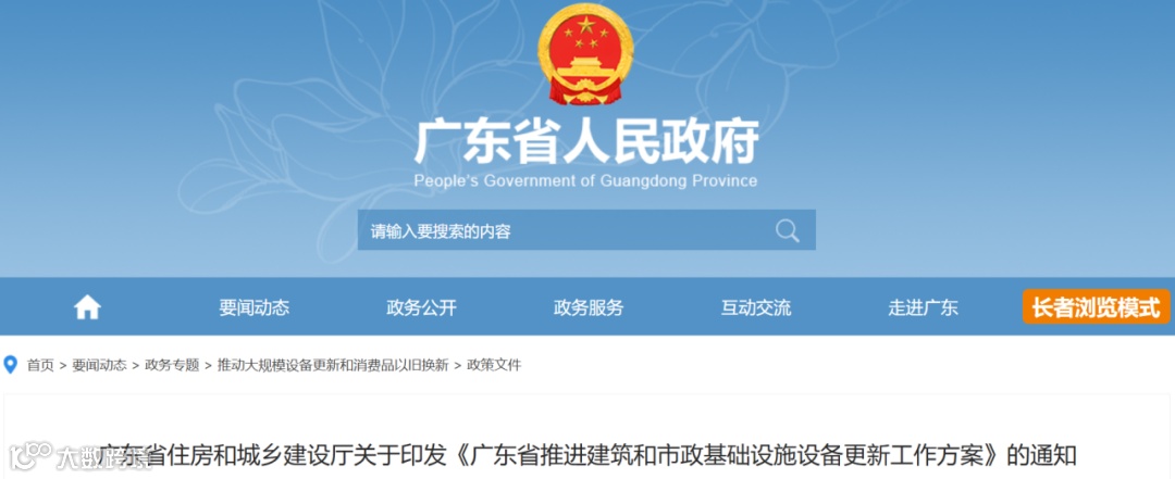 《广东省推进建筑和市政基础设施设备更新工作方案》中的重点工作任务中提到:建筑节能改造。按照《重点用能产品设备能效先进水平、节能水平和准入水平》《建筑节能与可再生能源通用规范》(GB 55015)等政策和现行国家及行业标准,摸排改造超出设备使用寿命、存在安全隐患且无维修价值、能效低、发生过重大事故、主要部件严重受损的热泵机组、散热器、冷水机组、外窗(幕墙)、外墙(屋顶)保温、照明等设备,推进既有建筑节能和绿色化改造。