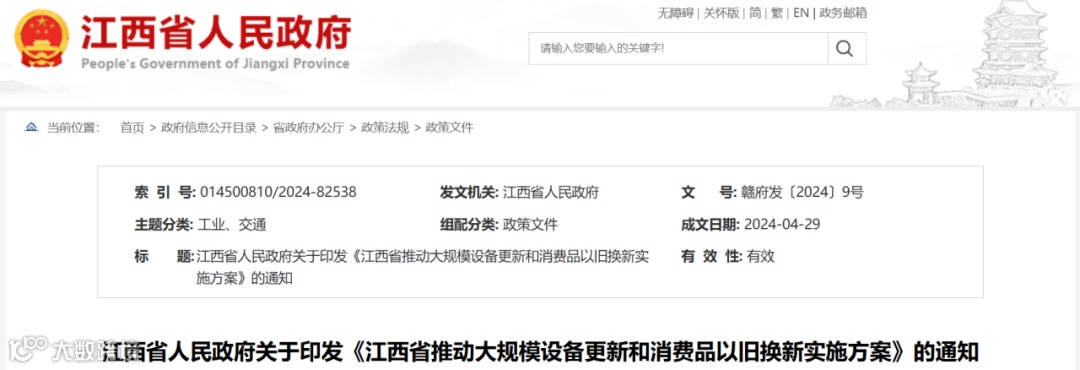 现将《江西省推动大规模设备更新和消费品以旧换新实施方案》印发给你们,请结合工作实际,认真贯彻执行。