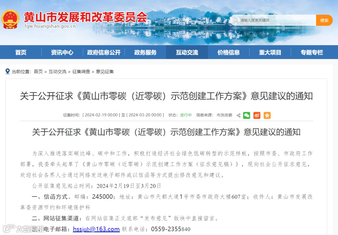黄山市零碳(近零碳)示范创建工作方案