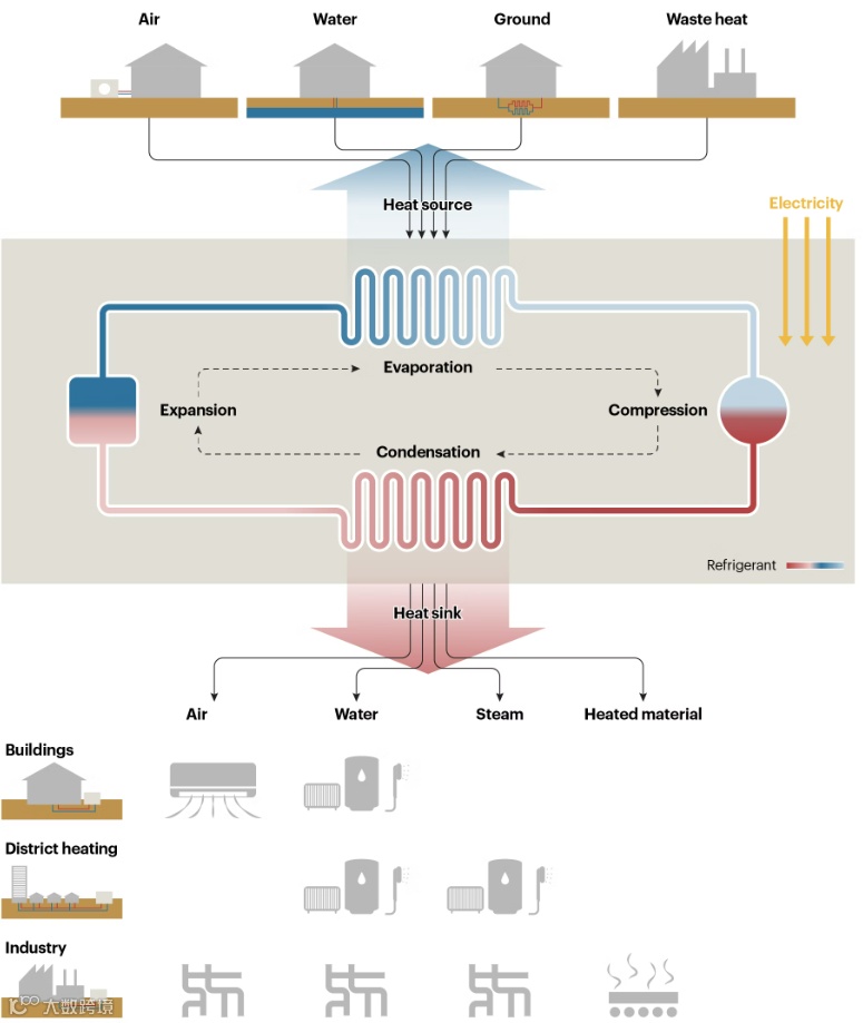 通俗理解,热泵的原理就是把传统的燃煤、燃气制热,改为电制热。