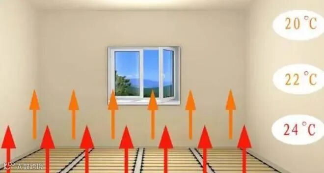 这种方式是现在普遍认为家庭最舒适的供暖方式之一,节能、运行成本低、舒适度高。屋内供暖温度均匀,暖气从脚底开始上升非常符合中国中医养生理论。