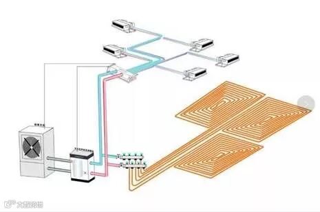 夏天“二联供”中央空调的室外主机产出冷冻水,经过循环系统在风机盘管进行热交换,将冷气吹出;冬天室外主机产出热水,通过热水在专用采暖管道内循环流动,加热地面装饰层,通过地面辐射和对流的传热使地面升温。