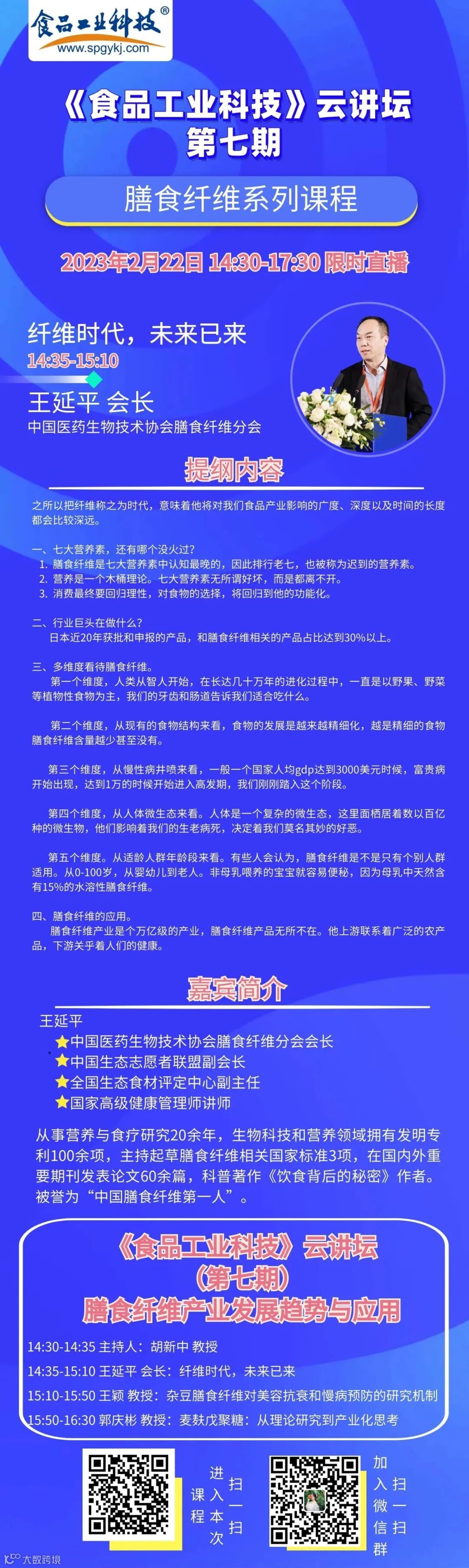 点击“阅读原文”直接进入本期直播课:膳食纤维产业发展趋势与应用