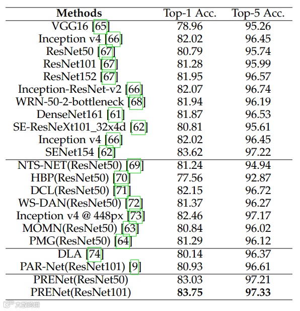 本文使用在 ImageNet 上预训练的ResNet[10]作为基础网络。对于实验性能评估,使用Top-1准确率(Top-1)和Top-5准确率(Top-5)对食品类别识别进行评估。