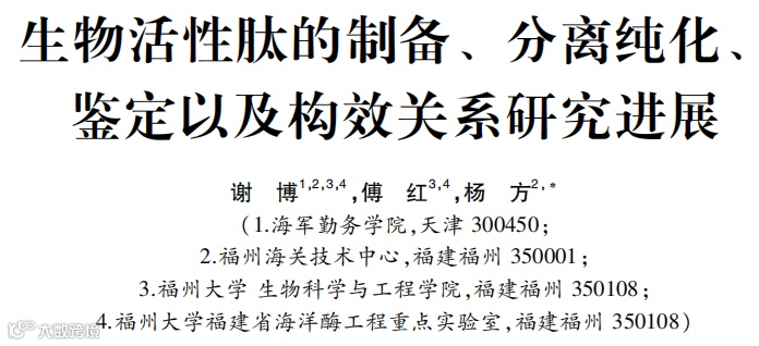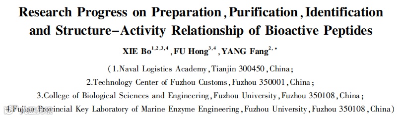 Abstract: Biological peptides are a kind of protein compounds with molecular weight lower than 6 kDa, which become the focus of food research because of its wide source, human-derived protein molecular structure, easily digestion, absorption and use, highly safe, and many biological activities such as cholesterol reduction, blood pressure reduction, antibacterial activity, antioxidant activity and so on.However, the application of bioactive peptides in food is significantly affected by its structure and function, which are closely related to the preparation, isolation, purification and structure identification of bioactive peptides.In this paper, three preparation methods based on the primary structure of bioactive peptides were introduced: chemical synthesis, genetic engineering and enzymatic hydrolysis. The separation and purification methods such as reversed-phase high performance liquid chromatography, gel filtration chromatography, ion exchange chromatography, electrophoresis technology, affinity chromatography, ultrafiltration, aqueous two-phase extraction, multidimensional chromatography combination and various separation methods based on the differences of molecular weight, polarity, isoelectric point and other properties of peptides were introduced. Electrophoresis, mass spectrometry, Edman degradation, ultraviolet/infrared spectroscopy, circular dichroism and nuclear magnetic resonance based on the differences of primary structure, secondary structure and tertiary structure of bioactive peptides were introduced. The principles, advantages, disadvantages and applicable objects of various methods were described, and the relationship between the activity of bioactive peptides and the number and the position in the carbon chain of hydrophobic amino acids, basic amino acids and aromatic amino acids in the polypeptide chain and the future development direction were analyzed, in order to provide new research ideas for screening safe and effective peptides, and provide theoretical basis for peptide application.