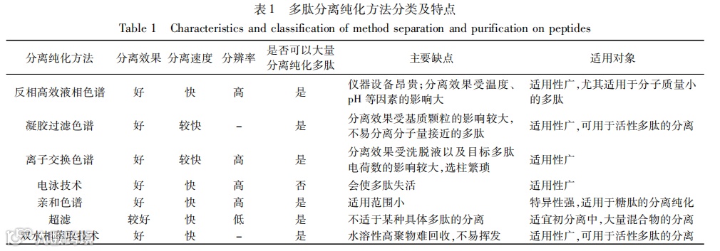 摘要:生物活性肽是一种分子量低于6 kDa的蛋白类化合物,其来源广泛,具有人源蛋白分子结构,易消化利用,安全性高,且因具有降胆固醇、降血压、抗菌、抗氧化等众多生物活性而成为食品领域研究的热点。然而生物活性肽在食品中的应用受其结构和功能的影响显著,其结构与功能又与生物活性肽的制备、分离纯化、结构鉴定密不可分。本文基于生物活性肽一级结构结构介绍了化学合成法、基因工程法以及酶解法三种生物活性肽的制备方法;基于多肽分子量、极性、等电点等性质的不同介绍了反相高效液相色谱法、凝胶过滤色谱法、离子交换色谱法、电泳技术、亲和层析法、超滤、双水相萃取法以及多维色谱组合和多种分离方法相结合的分离纯化方法;基于生物活性肽一级结构、二级结构、三级结构特性的不同介绍了电泳法、质谱法、Edman降解法、紫外/红外光谱、圆二色谱法、核磁共振法;并阐述了各种方法的原理、优缺点以及适用对象,分析了生物活性肽活性的产生与多肽链中疏水性氨基酸、碱性氨基酸以及芳香族氨基酸的数量、在碳链中所处的位置之间的关系和未来发展方向,以期为筛选安全有效的多肽提供新的研究思路,并为多肽的应用提供理论依据。