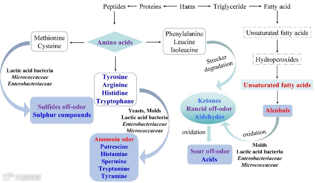 图4 干腌火腿异味形成的可能途径