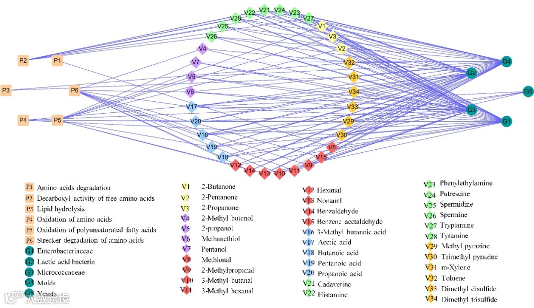 图3 腐败微生物与代谢物之间的网络