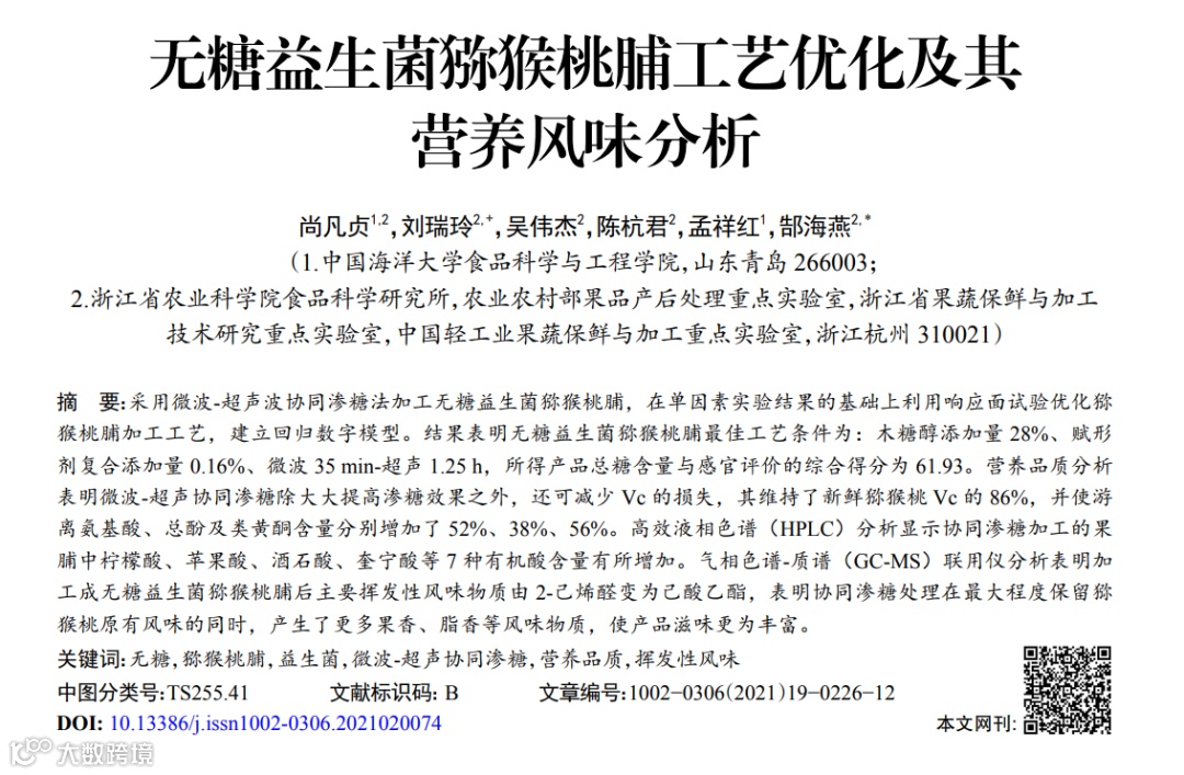 无糖益生菌猕猴桃脯工艺优化及其营养风味分析