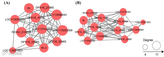 图5 两种热处理条件下差异修饰蛋白相互作用网络图