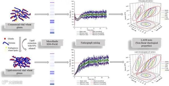 2、在小麦粉面团系统中,麸质蛋白和脂质之间的相互作用以前已经通过间接湿化学方法进行了研究。然而,目前还没有研究麸质本身的非线性力学和流变特性以及内源性小麦脂质对这些特性的影响。