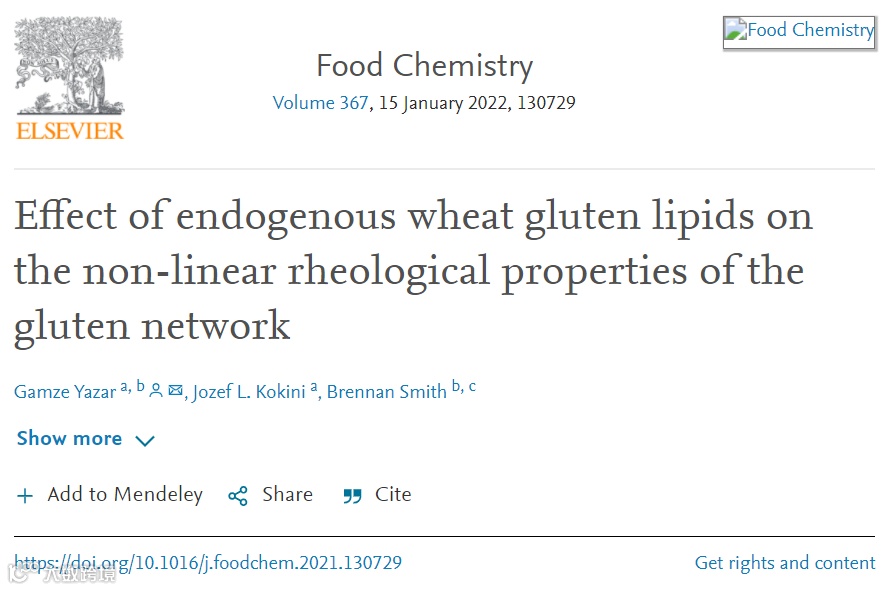 3、研究了内源小麦脂质对面筋热特性、混合行为、非线性流变特性的影响,探讨了在大加工变形条件下,小麦脂质对面筋粘弹性行为的贡献。