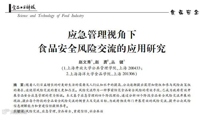 应急管理视角下食品安全风险交流的应用研究