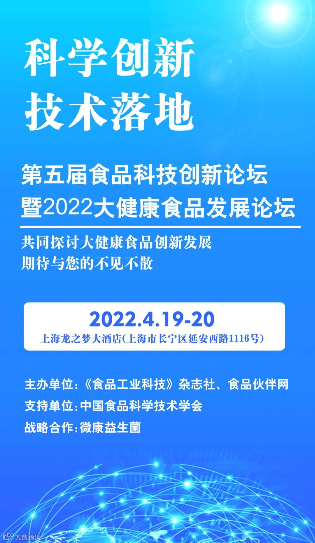 2022年4月19-20日,《食品工业科技》杂志社将继续携手食品伙伴网举办《第五届食品科技创新论坛暨2022大健康食品发展论坛》,洞察消费趋势,带来最新的创新技术,为食品行业发展指明方向。