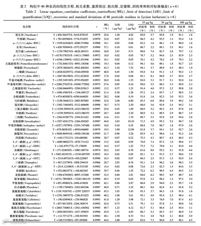 QuEChERS一气相色谱一三重四极杆质谱法同时测定枸杞中46种农药残留