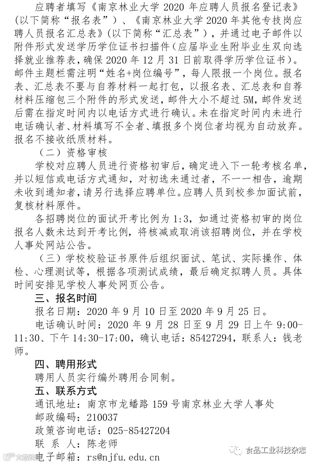 南京林业大学2020年其他专技岗应聘报名