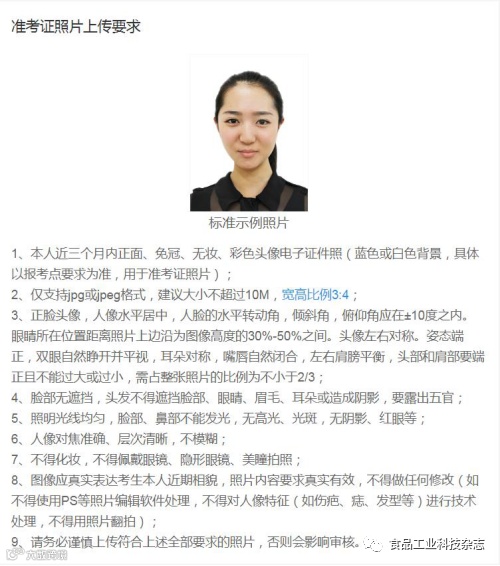 1.本人近三个月内正面、免冠、无妆、不戴眼镜、彩色电子证件照(白色背景,用于准考证照片)。照片要求见下图: