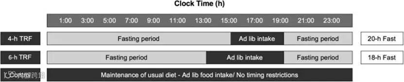 在这里,美国伊利诺伊大学的研究人员在2个月的时间内研究了TRF的两种流行形式(4小时和6小时饮食)。这项研究是首项比较肥胖成人4小时(仅在下午3点至7点之间进食)和6小时TRF(仅在下午1点至7点之间进食)减肥效果的随机对照试验。该试验的具体目的是评价4小时TRF、6小时TRF与没有进餐时间限制的对照组的差距。还检查了饮食的依从性和不良事件的发生。