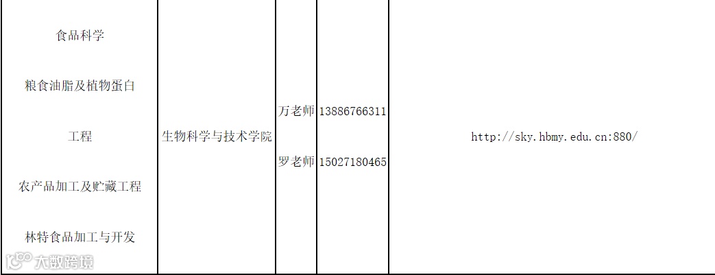 二、缺额食品相关专业及联系方式:(★标出为专硕)
