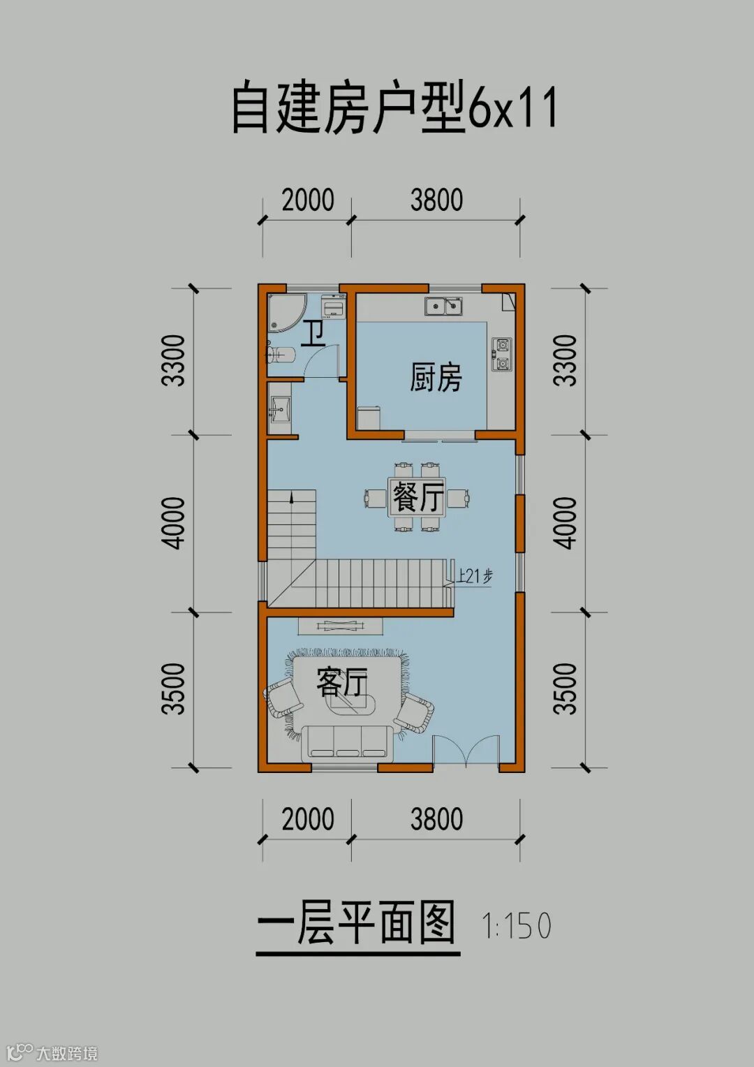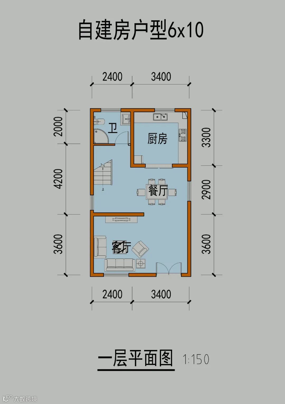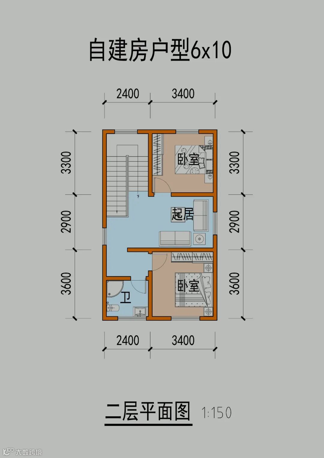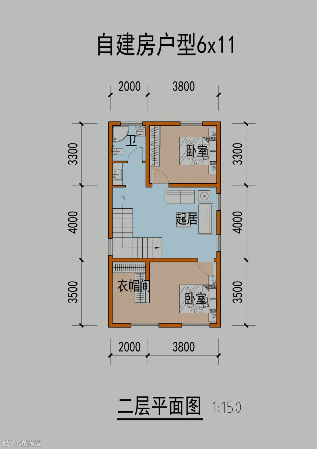 首先看下常见的面宽6米,进深10~14米的布局,面宽5.5~6.5可以参考使用~