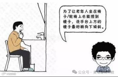 5、为方便轮椅老人在洗漱时可以照到镜子,镜子可以采用倾斜设计