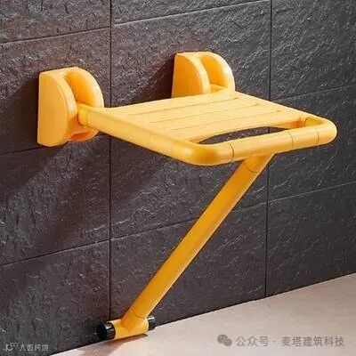 5、宜在适当位置设置洗澡椅(凳),高度应满足老年人坐姿洗浴要求。见下图,可采用可折叠式