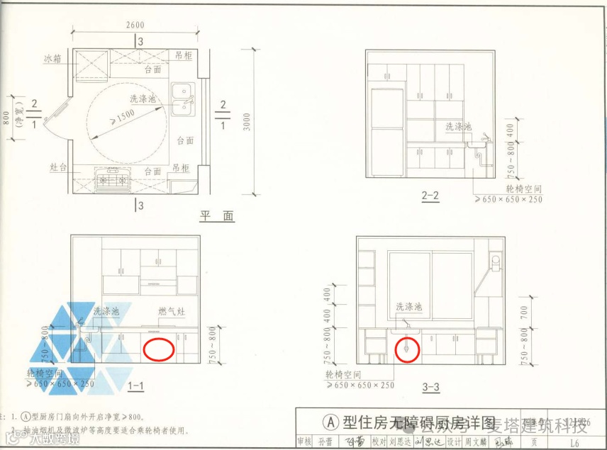 2、供乘轮椅老年人使用的厨房,操作台下应留出容膝容脚空间,(参考下图)