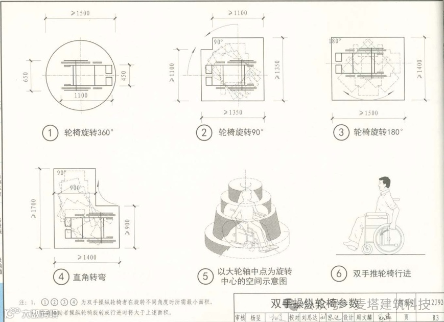 每两个房间连接节点处应留有轮椅转向的空间,轮椅转向空间应留直径不小于1500的空间(参考下图)
